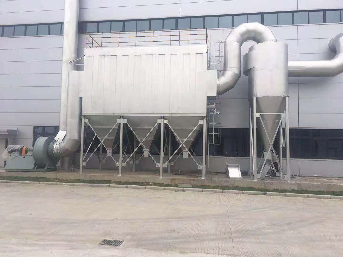 3.細(xì)微粉塵經(jīng)過(guò)脈沖袋式除塵器系統(tǒng)被;潔凈空氣自引風(fēng)機(jī)出口排放至室外;