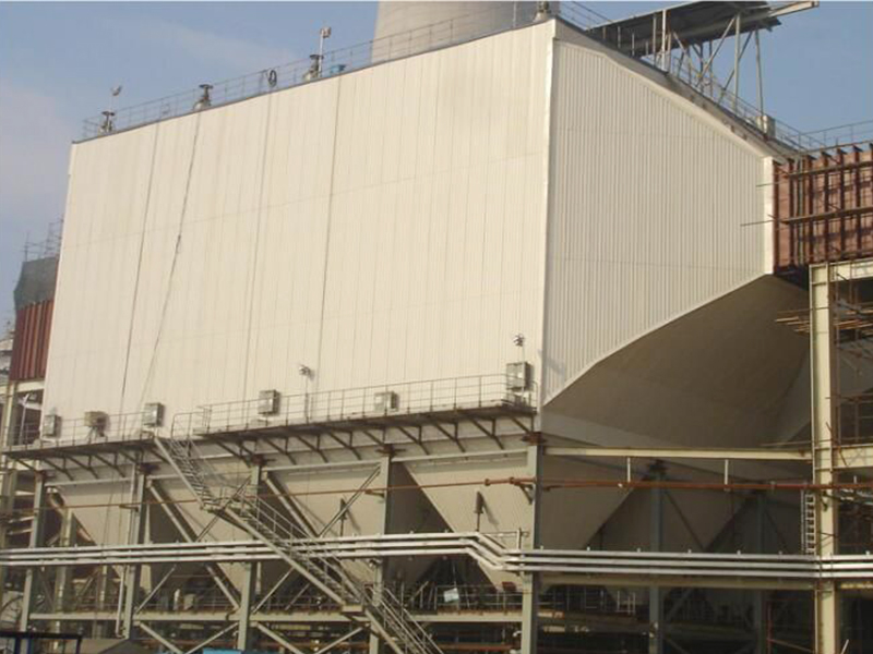 1.靜電均采用鋼結構外殼,結構輕巧,便于安裝和檢修,殼體一側和灰斗均設有檢修門,以便工人進人內部安裝和檢修,殼體的灰斗部分設有阻流板,頂部大梁下和電場兩外側均有擋風板,以防含塵氣體繞過電場由入口直達出口而降低除塵效率。 殼體的每根柱腳上分別安裝固定支座和活動支座,用以由于殼體受熱產生的熱應力。宜戶外安裝,殼體頂部有兩層鋼板組成的頂蓋,與煙氣接觸的一層為內頂蓋,起密封電場的作用,最上面的一層為外蓋起防雨雪保護設備的作用。設備外側均敷設保溫層,保溫層采用保溫棉及彩色鋼板保護層。